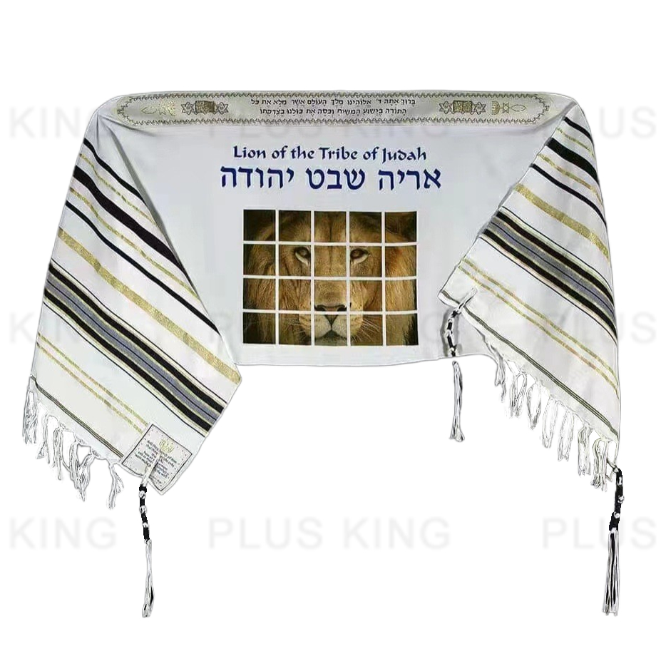 “This striking prayer shawl features the powerful image of the Lion of Judah, symbolizing strength, courage, and the victory found in faith. Designed with care, it serves as a meaningful covering for prayer, worship, and reflection. The shawl is a reminder of God’s promises and His mighty presence, making it both a beautiful and spiritual garment for personal devotion or special occasions.”